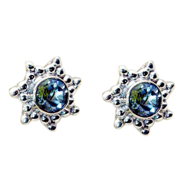 Silver Blue Topaz Starburst Studs