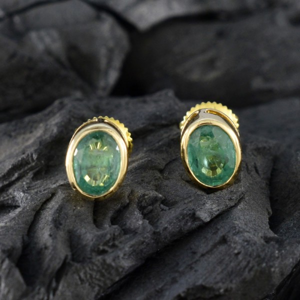 Silver Green Jasper Oval Frame Studs