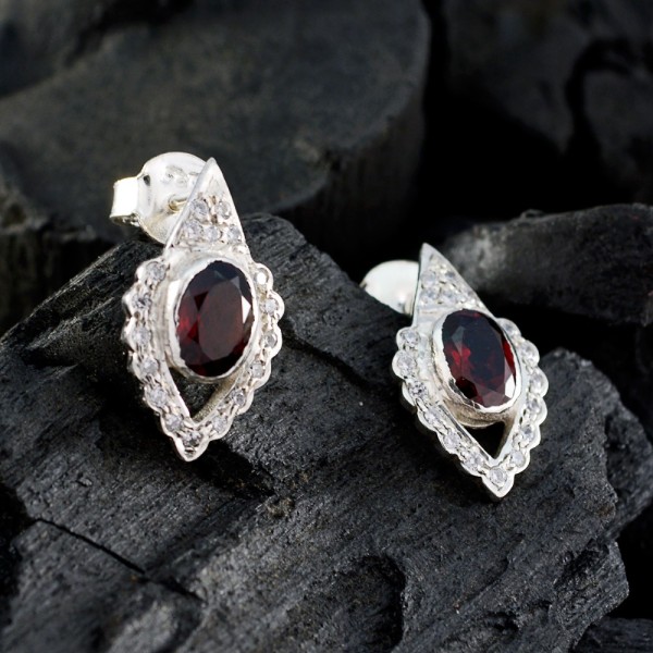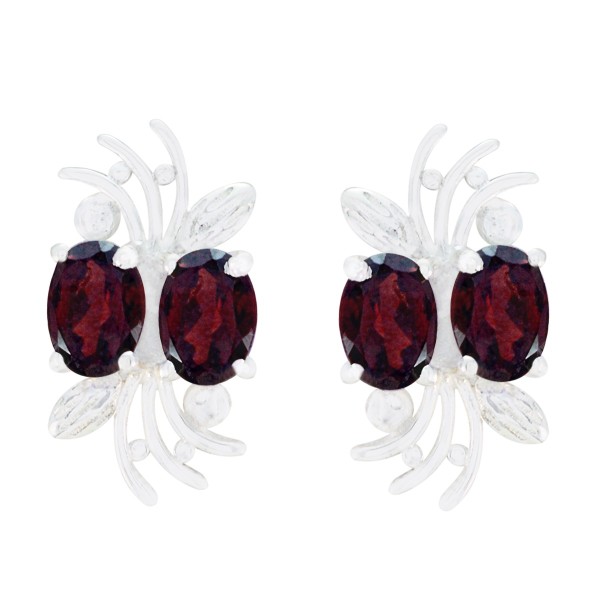 Silver Garnet Oval Floral Studs