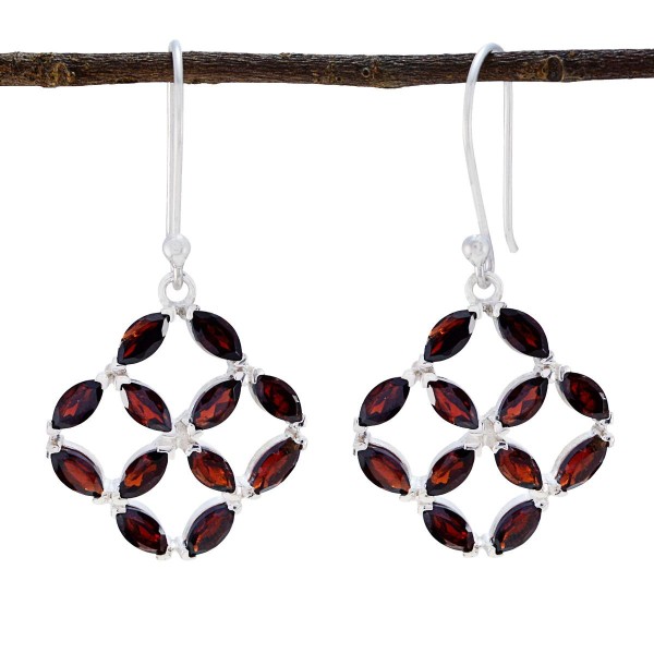 Silver Garnet Linear Drop Studs