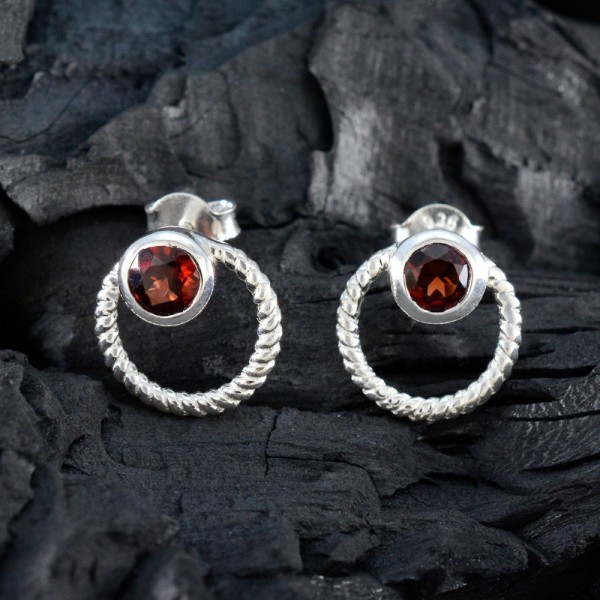 Silver Garnet Twisted Circle Studs