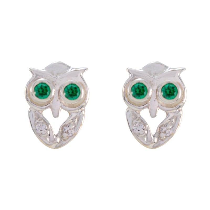 Charming Green CZ Owl Stud Earrings in silver, featuring sparkling green cubic zirconia eyes and delicate detailing for a playful yet elegant look.