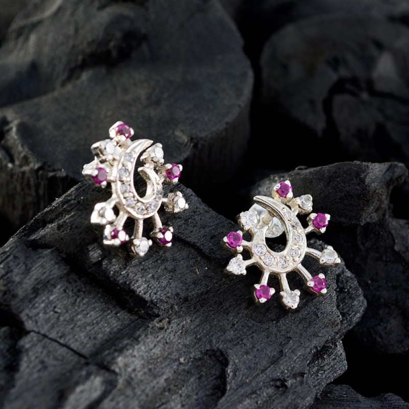 The Red CZ Peacock Stud Earrings feature a unique peacock-inspired design with shimmering white CZ stones and bright red CZ accents. A bold and festive piece perfect for special occasions and ethnic styling.