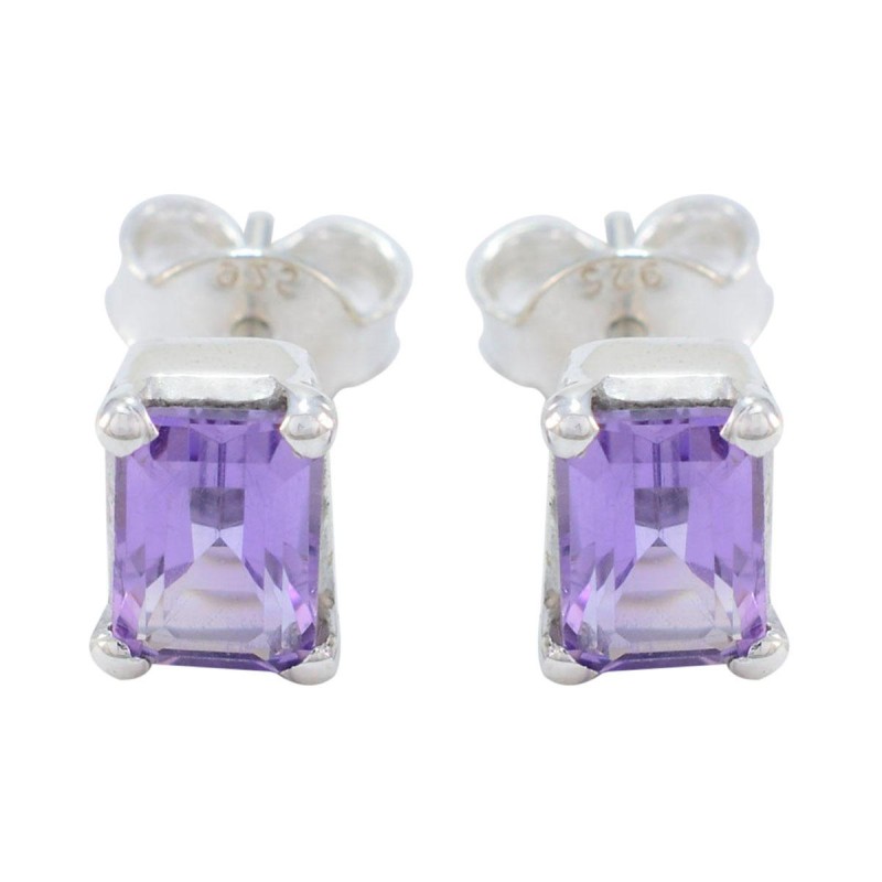 Classic and refined, the Silver Amethyst Emerald-Cut Studs feature rectangular emerald-cut amethyst stones set in sleek silver prongs. Their regal purple hue adds timeless elegance, perfect for daily wear, festive occasions, or formal styling.