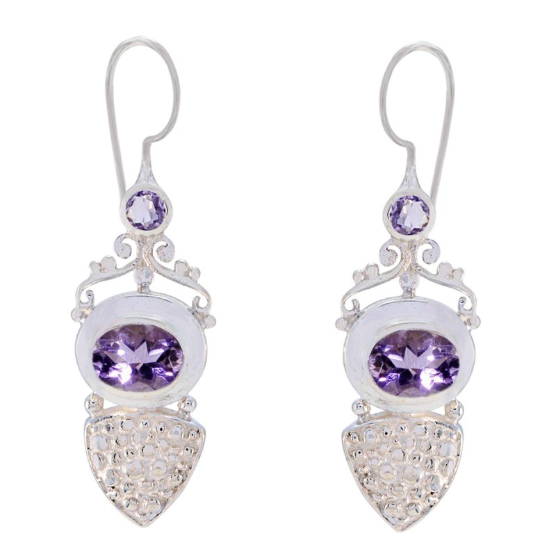 Elegant and artistic, the Silver Amethyst Ornate Studs feature a detailed silver framework paired with brilliant-cut amethyst stones. Their royal purple sparkle makes them perfect for festive occasions, evening wear, or adding a touch of vintage charm to everyday looks.