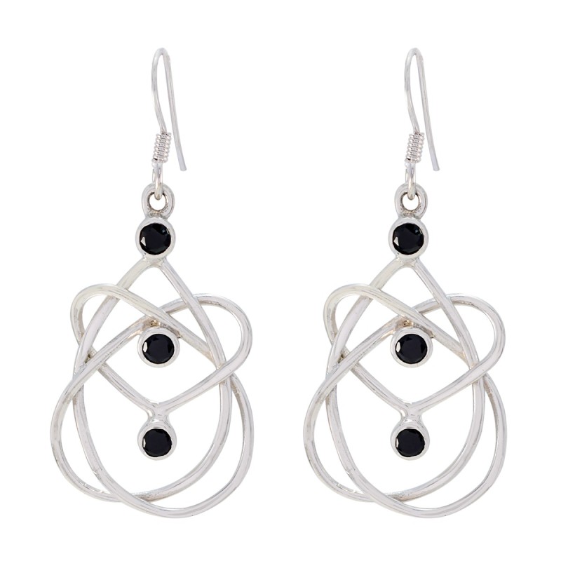 Contemporary and chic, the Silver Black Onyx Triple Orbit Studs showcase an artistic looped silver frame adorned with three sleek black onyx stones. Their bold yet elegant design makes them perfect for evening wear, formal events, or statement styling.