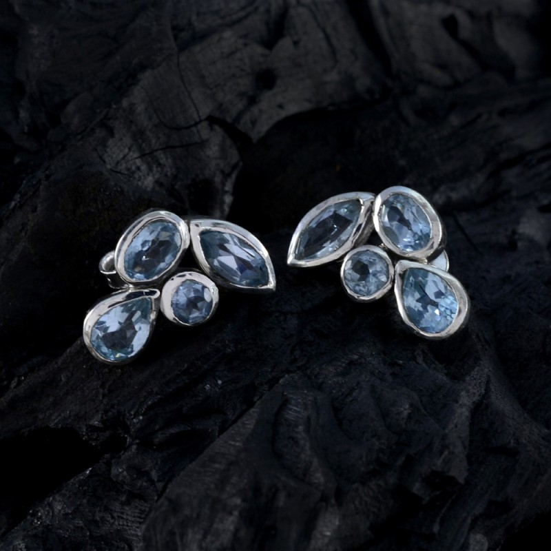 Radiant and stylish, the Silver Blue Topaz Multi-Shape Cluster Studs feature pear, oval, round, and marquise-cut blue topaz stones arranged in a chic cluster design. Their cool blue sparkle brings elegance and freshness, perfect for daily wear, festive occasions, or evening styling.