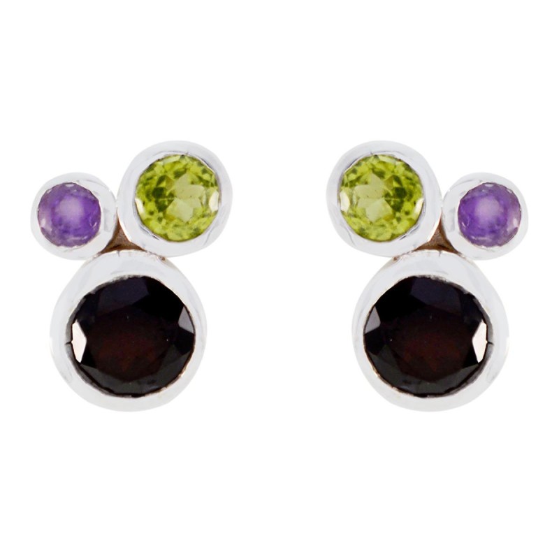 Chic and versatile, the Silver Multi-Gemstone Trio Studs combine the deep allure of black onyx, the fresh sparkle of peridot, and the calming elegance of amethyst. This colorful trio creates a stylish balance, making them perfect for daily wear, festive gatherings, and contemporary looks.